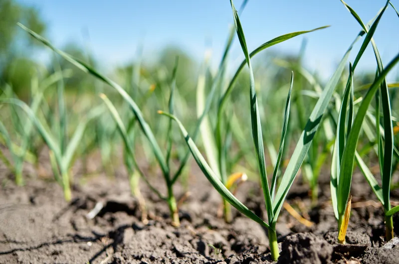 Apply a layer of organic mulch, such as straw or shredded leaves, around the garlic plants. Mulching helps conserve soil moisture, suppress weeds, and moderate soil temperature. Regularly remove any weeds that emerge near the garlic to minimize competition for nutrients and water.